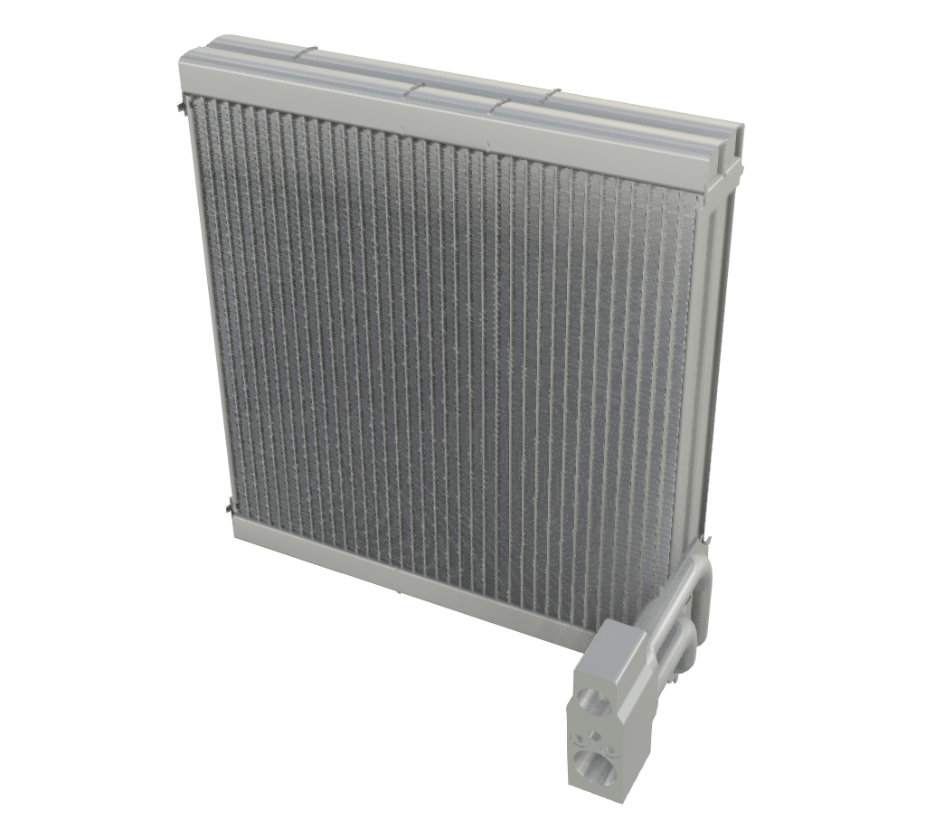 蒸发器位于HVAC内,在高温天气能快速冷却乘员舱的温度。制冷剂在蒸发器内发生相变,吸收通过蒸发器芯体外侧的空气热量,并使其温度低于环境空气温度,从而使车厢内的热量和湿气得到吸收。蒸发器表面进行清水涂层技术处理,使得蒸发器表面冷凝水更容易流出,而且能提高蒸发器的耐腐蚀、防霉抗菌能力,并且不容易产生异味。