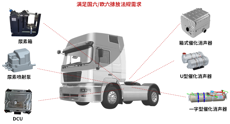 尿素箱总成用于尿素存储罐,同时能够准确检测箱体内温度,防止尿素结冰,主要用于安装在卡车上,装上尿素,经过发动机循环,排放达到国VI标准。国VI排放标准柴油机减排系统中需用到尿素水溶液,该尿素箱用于存储尿素水溶液,采用SCR选择性还原技术,利用尿素水溶液与氮氧化物Nox进行反应,生成无污染的氮气和水。